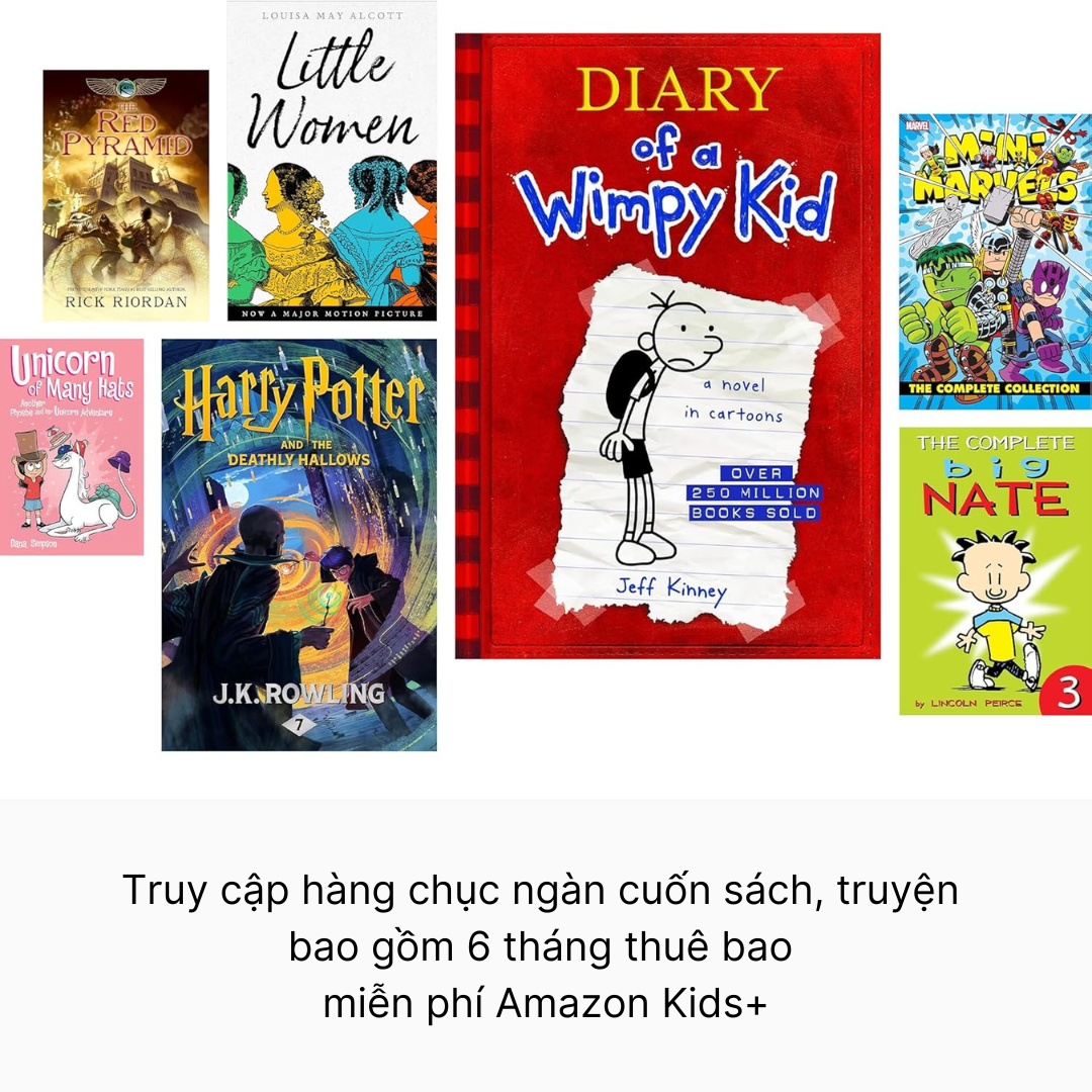 Tận hưởng 6 tháng trải nghiệm Amazon Kids+. Từ những tác phẩm kinh điển như Artemis Fowl và Nhật ký chú bé nhút nhát đến những bộ truyện nổi tiếng như Harry Potter và Big Nate , bạn sẽ được truy cập không giới hạn vào thư viện nội dung được tuyển chọn kỹ lưỡng dành cho trẻ em ở mọi lứa tuổi, hàng ngàn cuốn sách và hàng trăm sách nói. Với thư viện sách phong phú phù hợp với lứa tuổi, trẻ em sẽ được thỏa sức khám phá những tựa sách, tác giả mới và đọc sách lâu hơn.