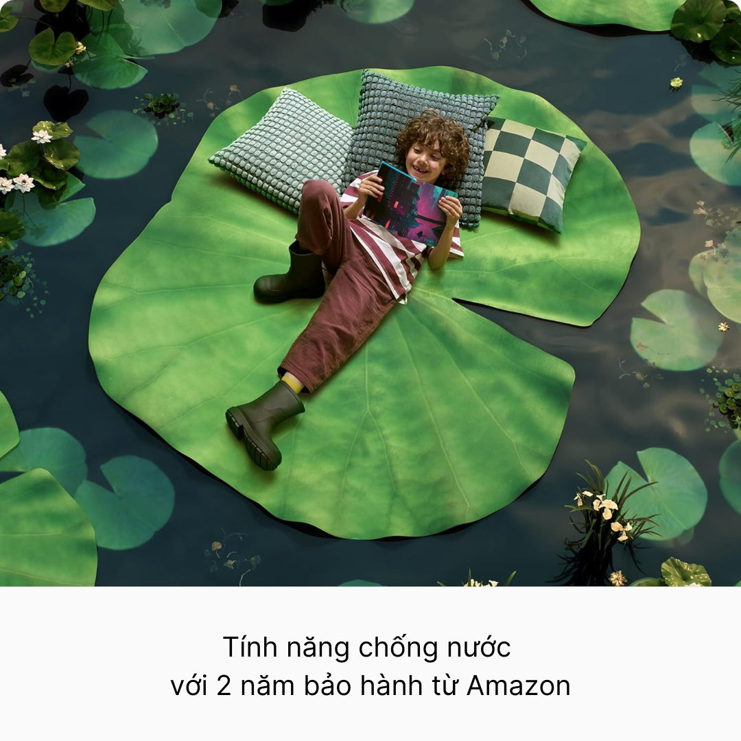 Chống nước (IPX8), được thử nghiệm chịu được độ sâu 2 mét nước ngọt trong 60 phút. Tìm hiểu thêm về Kindle Paperwhite chống nước.